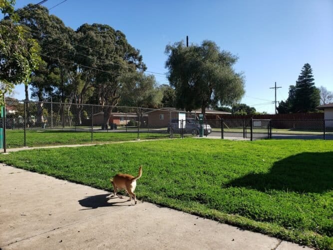 Port Hueneme Naval Base Dog Park in Port Hueneme, California. Visitors appreciate the park’s cleanliness and spaciousness, noting it as a safe and well-maintained area for dogs to play. However, some reviews mention concerns about limited shade and occasional muddy conditions.