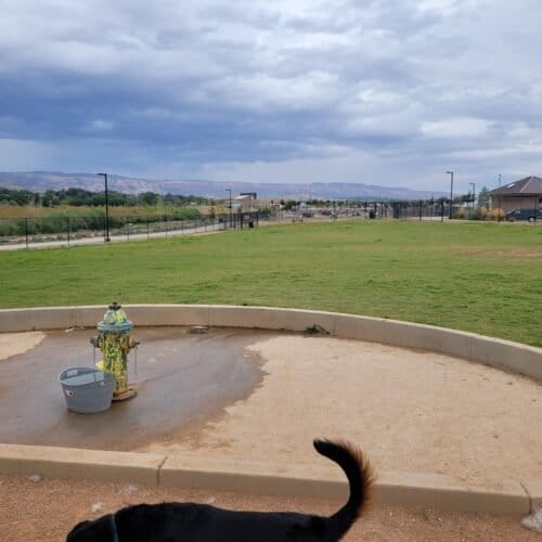 Las Colonias Dog Park in Grand Junction, Colorado. Visitors appreciate the park’s cleanliness, ample space, and well-maintained amenities, contributing to a pleasant atmosphere. However, some caution about occasional muddy areas and limited shade.
