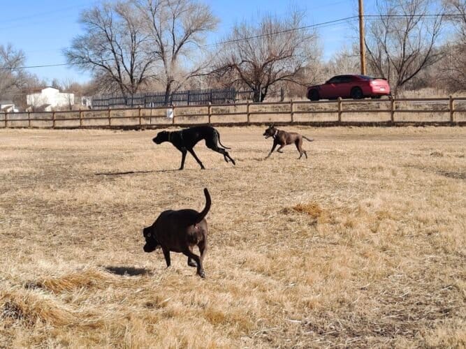 Rover Run Dog Park in Greeley, Colorado. Visitors appreciate the park’s cleanliness and spaciousness, with ample room for dogs to play and socialize. However, some caution about the lack of shade and occasional muddy areas.