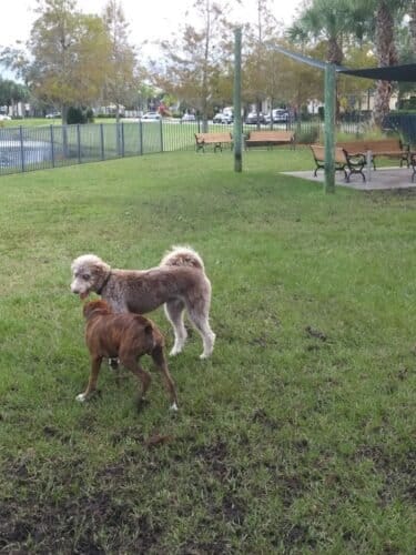 Tradition Dog Park (private) in Port St. Lucie, Florida. Visitors appreciate the park’s cleanliness, ample shade, and well-maintained amenities, contributing to a pleasant atmosphere. However, some reviews mention concerns about occasional muddy areas and the need for better fencing.