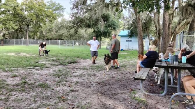 Rotary Centennial Dog Park in Spring Hill, Florida. Visitors appreciate the park’s cleanliness, ample space, and well-maintained facilities, with many noting the availability of water and shaded areas. However, some caution about occasional muddy conditions and the presence of aggressive dogs.