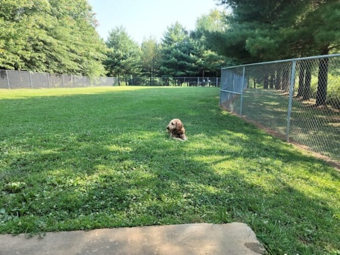 Dog Exercise Area at Green Park in Gaithersburg, Maryland. Visitors appreciate the park’s cleanliness, ample space, and well-maintained facilities, which contribute to a pleasant atmosphere for both dogs and their owners. However, some reviews mention concerns about occasional muddy areas and limited shade.