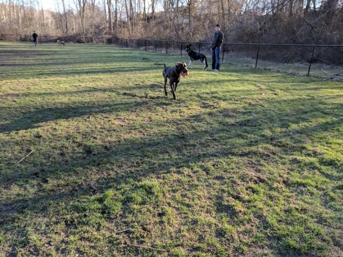 Rockford Dog Park in Rockford, Michigan. Visitors appreciate the park’s cleanliness and spaciousness, noting the well-maintained grounds and friendly atmosphere. However, some caution about occasional muddy areas and limited shade.