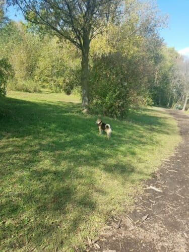 Otter Lake Off-leash Dog Area in White Bear Township, Minnesota. Visitors appreciate the park’s spaciousness and cleanliness, with ample shade and well-maintained amenities contributing to a pleasant atmosphere. However, some caution about occasional muddy areas and limited parking space.