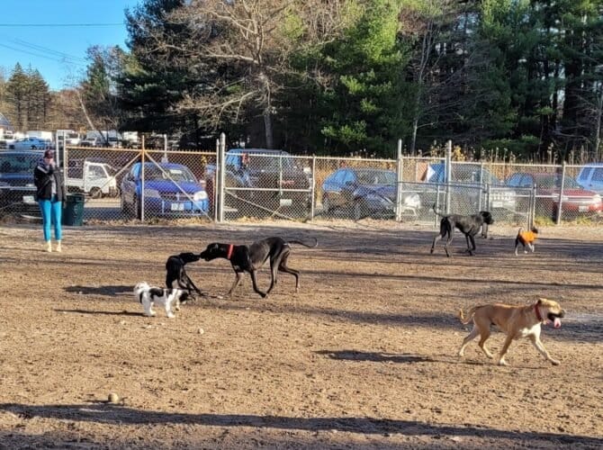 Derry Dog Park in Derry, New Hampshire. Visitors appreciate the park’s cleanliness and spaciousness, noting it as a well-maintained area for dogs to play. However, some reviews mention concerns about occasional muddy conditions and limited shade.