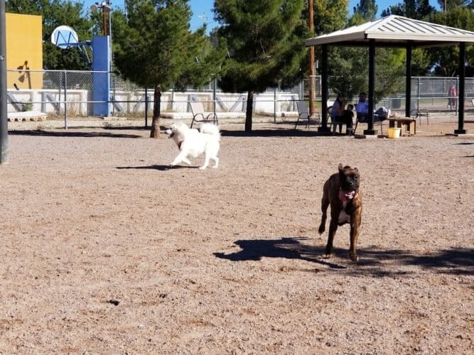 Las Cruces Dog Park in Las Cruces, New Mexico. Visitors appreciate the park’s cleanliness, ample space, and well-maintained facilities, which contribute to a pleasant atmosphere. However, some reviews mention concerns about occasional aggressive dogs and limited shade areas.