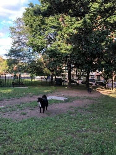 Olde English Downtown Dog Park in Albany, New York. Visitors appreciate the park’s cleanliness and well-maintained facilities, along with its spacious area and friendly atmosphere. However, some caution about occasional muddy conditions and limited shade.