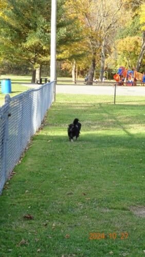 Painesville Rec Park Dog Park in Painesville, Ohio. Visitors appreciate the park’s cleanliness and spaciousness, with amenities like water stations and shaded areas contributing to a pleasant atmosphere. However, some caution about occasional muddy conditions and the need for better fencing.