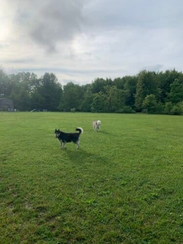 Red River Dog Farm in Wakeman, Ohio. Visitors appreciate the park’s spaciousness and cleanliness, noting it as a well-maintained area for dogs to play. However, some caution about the lack of shade and occasional muddy conditions.