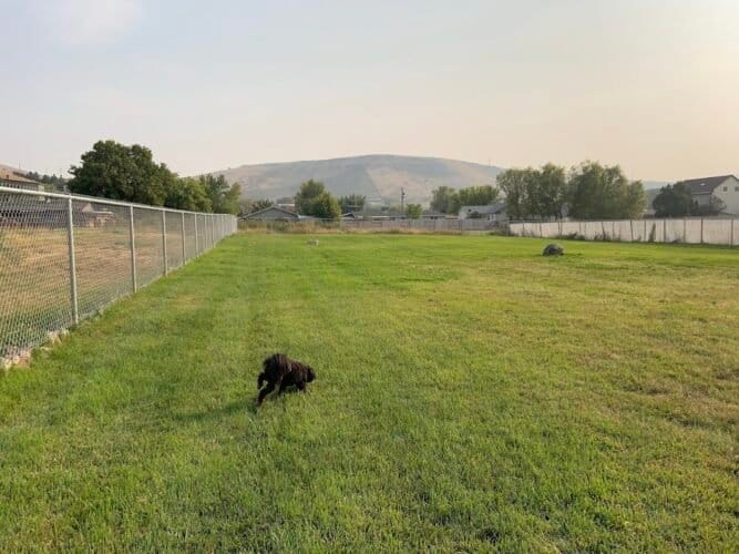Sam-O Park in Baker City, Oregon. Visitors appreciate the park’s cleanliness and spaciousness, noting it as a safe and well-maintained area for dogs to play. However, some reviews mention concerns about occasional muddy areas and limited shade.
