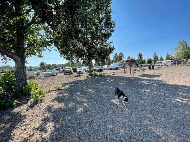 Riverbend Dog Park in Bend, Oregon. Visitors appreciate the park’s spaciousness and cleanliness, with ample shade and water facilities contributing to a pleasant atmosphere. However, some caution about occasional muddy areas and the presence of aggressive dogs.