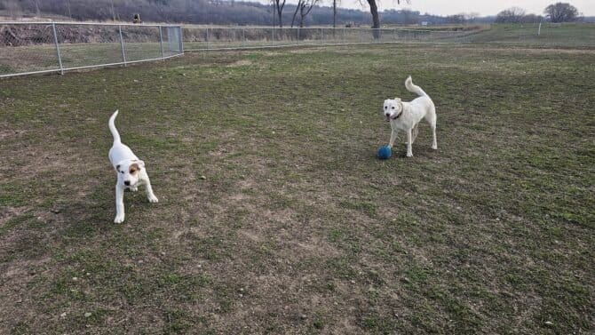 Lien Park Dog Park in Sioux Falls, South Dakota. Visitors appreciate the park’s cleanliness and spaciousness, with ample amenities and a friendly atmosphere. However, some caution about occasional muddy areas and limited shade.
