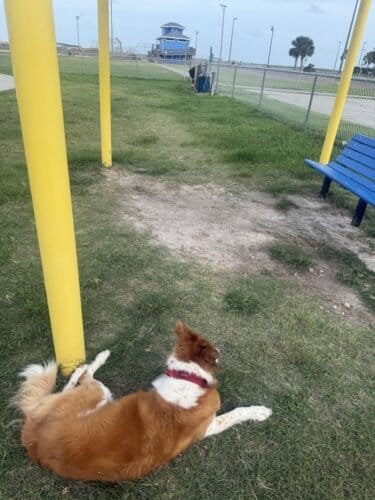 Port Aransas Community Dog Park in Port Aransas, Texas. Visitors appreciate the park’s cleanliness, ample shade, and well-maintained amenities, making it a pleasant spot for dogs and their owners. However, some reviews mention concerns about occasional muddy areas and the need for better fencing.